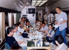 ヘリコプターの体験搭乗は、あいにくの強風で上空までいけず残念でしたが、9tの重量に耐えられる大きなヘリコプターで、新鮮な体験でした。そのあと、レンジャー部隊のデモンストレーションを見たり、人工呼吸、心臓マッサージの講習もしていただいたり、とても有意義に過ごすことができました。その晩は伊香保温泉に泊まり、お酒とカラオケとダンスで、楽しい夜を過ごしました。同窓というだけで、年令や性別を越えてうち溶け合える場ができることの素晴らしさを感じました。