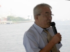 何しろ乗船時間は約2時間です。その中でやりたいことは盛り沢山。小林会長に挨拶をいただき、大沢先輩の乾杯で始まりました。