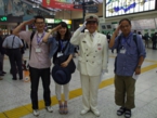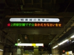 帰りの列車でも早速飲物が配られすぐに宴会が始まりました。別車両の様子を見に来る人、先頭車両からの眺めを楽しむ人、おしゃべりを楽しむ人、カラオケなど、自由に車両間を行き来して楽しく過ごしました。途中停車の西船橋駅では物珍しげに覗き込む人や写真を撮る人などがいて、少々恥ずかしいながらも誇らしい気分でした。武蔵野線の吉川美南駅でふたたびスイッチバックで先頭車両が変わる予定でしたが、在来線の人身事故の影響でしばらく待機との情報が入りました。既に酔っ払っている人たちには遅れはあまり関係なく、カラオケを解禁してかえって楽しい時間が延長されました。90分程度遅れで無事上野駅に到着するとホーム案内板には、「☆上野駅到着です☆おかえりなさいませ」と、またまた感激の表示が出ていました。2次会や同期会へ繰り出す人、まっすぐ帰宅する人など、三々五々の解散となりました。