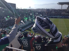 地元松本では圧倒的人気の松本山雅。J2ホームゲームの平均入場者数が6,400人程であるのに対し、山雅は12,000人強とほぼ2倍の差をつけてのダントツのサポーター集客力を誇ります。松本市民の熱い思いは、故松田直樹選手の魂とともに、その背番号3を引き継いだ元日本代表で松本市出身の田中隼磨選手とともにOne Soul。山雅と県陵との強い絆を誇りに郷土チームと母校を魂持ってこれからも応援できればと思います。