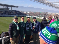 そんなわけでそれを知ってか熱狂的山雅ファンの中には県陵同窓生が大勢います。県陵フェイスブック1200人を通じて知り合った県陵出身山雅サポーターの熱い思いに感化され、私も東京から帰省、初めて松本のスタジアム、アルウィンを訪れた際は、県陵後輩A君がチケットを手配、後輩B君が地ビールを販売、信毎社員の後輩C君が号外を配布、後輩D女史がスタジアムアナウンスを務めるなど松本山雅の運営に今でも県陵同窓生たちが密接に関わっていることに驚嘆歓喜。おりしも、「先輩、この山雅タオルは買わなきゃだめですよ。」と教えられ購入したスタジアムでサポーター皆が掲げるタオルにはチームスローガンOne Soulの文字。これは県陵魂のことなのでは?と熱い思いが交錯したほどです。