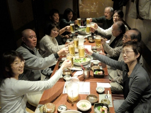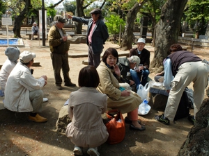 毎年、桜が終わる頃、東京谷中墓地の一角で、花見(実際に見るのは葉桜ですが)が盛大に開催されます。東虹会会員はもちろん、仲間の同期生など、縣陵なら誰でもOK! つまみなどは持ち寄りで暗くなるまでノンストップです。