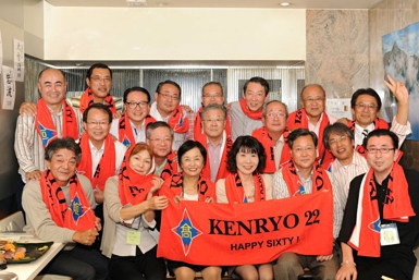 今年還暦を迎える「下駄の会」メンバー19人が集まり自ら「赤いチャンチャンコを着る会」を行いました。さすがにチャンチャンコではなく何故か写真のような赤いタオルを首にかけることになりました。2000年の東京同窓会以来のメンバーが「花てまり」に集い、還暦を確認し合いました。松本からは菊池君がわざわざ参加してくれて盛り上げてくれました。 何人かは今年度一杯で区切りを付けることになり、故郷に錦を飾る方もいるようです。お疲れさまでした。故郷で新たな人生を過ごしてください。 我々はまだ、65歳以上の高齢者の仲間には入れてもらえません、中途半端な世代である我々は、あと少し高齢者を支えなければなりません。「みんな頑張リまショ!」。 「下駄の会」の皆さん、face book や twitter に動画や写真を掲載しています。松本県が丘で探してみてください。(窪寺)