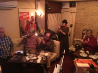クラス別にテーブルに分かれての合同クラス会では、愛知東邦大学教授の上條憲二君、ラジオ番組プロデューサーで松本市の観光大使を務めている赤司龍之祐君の両名からの格調高い講話を拝聴し、そして大懇親会では時間の経過を忘れるほどの大盛り上がり・・そのまま松本駅前のカラオケスナックでの二次会へと祝宴は尽きることなく繰り広げられていく・・寒波襲来の中、家路についたのは午前0時を既に過ぎていました。(大嶋三紀夫・二三(ふみ)の会会長)