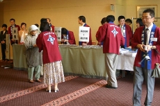 梅雨入り後最初の土曜日、天気は上々。市ヶ谷駅からほど近いアルカアディア市ヶ谷(私学会館)には、昼過ぎから縣陵東京同窓会会員のみなさんが次々に来場。実行委員会、28回卒のみなさんの結束と東奔西走のおかげで出席予定数はなんと250名超! 会場のセッティングに頭を悩ませるといううれしい悲鳴もきこえるほど。4月に松本で行われた「愛のリレー」事業を大成功させた28期のみなさんもかけつけ、トレードマークのそろいのはっぴも誇らしく、会場をゆきかっていました。