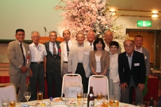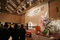 43回目を迎えた県陵東京同窓会・懇親会。今回350名を超える参加者の皆さんを会場のアルカディア市ヶ谷「富士の間」でお迎えしたのは、2007年世界のフラワーアーティスト27名に選ばれた華道家「草月流」師範の横井紅炎先生による美しい桜のフラワーアレンジメントとアルプスの写真でした。