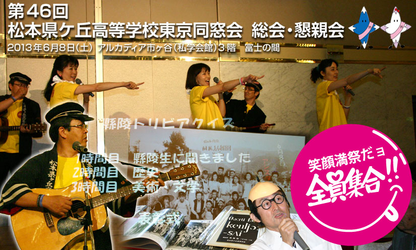 また,東京縣陵ネットHPをご覧になりご参加頂いた方々,Facebookを通じてご参加い頂いた若い方々にも感謝申し上げます。幅広い年代の方々に参加いただくことより、まさに「全員集合!!」を体現できたと思っております。つたない私どものアトラクション企画に対しましても,テーブル単位また,会場全体を盛り上げていただいた皆様には、心より御礼申し上げたいと存じます。