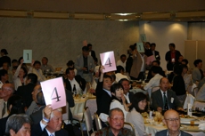 懇親会にそなえての座席のアレンジが終わり、各テーブルに着席。昨年から始まったこのスタイル、いろんな世代がひとつのテーブルを囲む事で生まれる新しいコミュニケーションが好評です。各テーブルには今回の実行委員会の35回卒、来期担当の36回卒のみなさんがアテンダントとして参加者のガイド役をこなしていました。