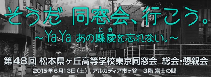 本年の同窓会のテーマは『そうだ、同窓会、行こう、YAYAあの縣陵(とき)を忘れない』としました。共通の認識として、「一年に一日の限られた時間ではありますが、同じ時代を過ごした友人と、昔を懐かしみながら、再会の喜びを深く味わってもらいたい!」という思いのもと、このコンセプトを基本として、在学時代に流行していたサザンオールスターズの歌の題名が、ちょうどよいフレーズとして納まりました。