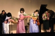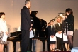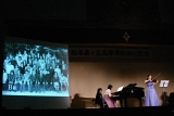 記念品贈呈では図書関連などのほかに、体育館用のグランドピアノを贈呈。美園会を中心に寄付、他方面からのあたたかい援助によって実現しました。実行委員長のあいさつのあとは贈呈されたグランドピアノのおひろめ。30回のみなさん手作りのパネルがしずしずと開かれ、田中ひかるさんの演奏する「明日にかける橋」とともにその姿をあらわしました。
