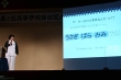 中村さんが登壇すると、その元気な声に在校生も目を丸くしていました。「みなさんが眠くならないように」と、いっしょにトライする実験などもおりまぜ、テキパキとお話はすすみました。