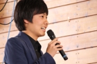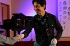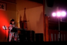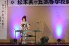 あでやかな着物姿で登場のやうこさんに会場がざわつきます。やうこさんは在校生に語りかけながらリラックスした様子で演奏が始まりました。突き抜ける高音、流麗なキーボードの弾き語りはすばらしいものでした。縣陵時代は決して良い子ではなかったと当時を振り返るやうこさん。「和」のテイストがちりばめられたオリジナル曲は緩急自在。時間をわすれるステージでした。 パフォーマンス サンキュー手塚(手塚 寛)さん