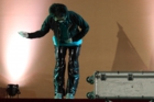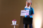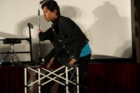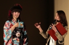 サンキュー手塚さん登場はロボットから。自己紹介、縣陵時代のエピソードなど語りも楽しく、あっという間にサンキュー手塚ペースにはまります。23年間やり続けているという十八番(オハコ)、ホイットニーヒューストンの名曲 I Will Always Love Youに乗せての「梅干し」芸、在校生も引っ張り出してのパフォーマンスに、会場が揺れるほどの大爆笑。おかしくてカメラが手ぶれしてうまく撮影できないほどでした。とぼけた中にもあたたかみのある新作も披露され、世界をうならせる技、芸のすごさに感銘を受けました。